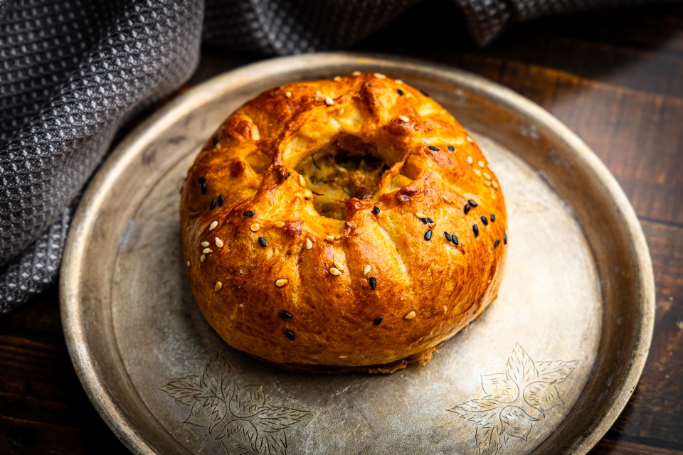 Пирожок из дрожжевого теста с варёной курицей, картофелем и луком, 140г.