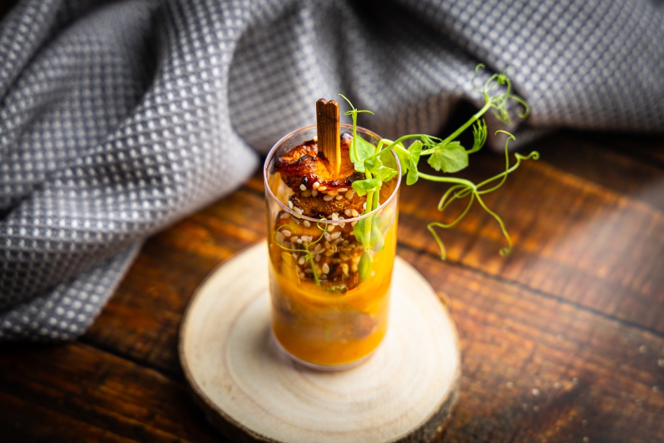 Курица терияки на шпажке в стаканчике с соусом манго-чили — 40г.